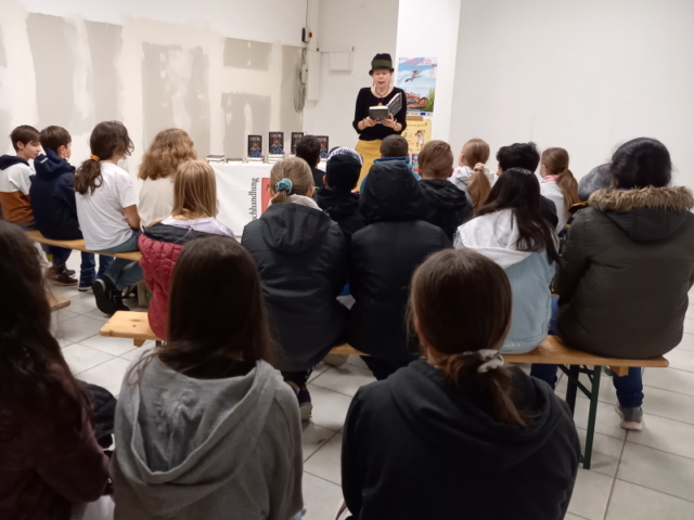 Zuerst stellte Frau Silke Nagel, die Inhaberin der Buchhandlung, den Schülern den fantastischen Abenteuerroman „Gnorl“ von Florian Fuchs vor. Auf eindrucksvolle Weise entführte sie die Schülerinnen und Schüler in die unterirdische Welt der Kobolde. Gebannt lauschten die Kinder, wie die Hauptfiguren des Romans mithilfe des Kobolds „Gnorl“ zahlreiche Abenteuer bestehen mussten, um die Höhlenwelt der Kobolde wieder verlassen zu können.