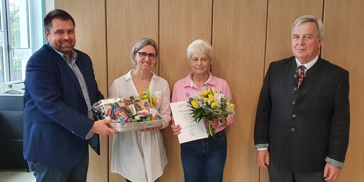 Die Mitarbeiterin Frau Anita Maurer, die seit vielen Jahren bei der Marktgemeinde Siegenburg beschäftigt ist, konnte jetzt ihr vierzigjähriges Dienstjubiläum feiern. Bürgermeister Dr. Johann Bergermeier bedankte sich bei der Dienstjubilarin herzlich für ihre langjährige Tätigkeit und ihre hervorragende Arbeit für die Marktgemeinde an der Schule in Siegenburg. Gemeinsam mit der Schulleitung, die auch im Namen aller Kolleginnen und Kollegen und der ganzen Schulfamilie gratulierte, überreichte der Bürgermeister der langjährigen Mitarbeiterin eine Urkunde und einen Blumenstrauß. Für die Schule überreichte die Schulleitung Frau Maurer als gute Seele des Hauses einen Geschenkkorb.
