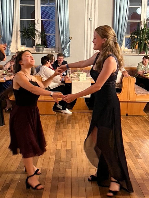 Nach der traditionellen Elterntanzrunde stellten sich 18 Paare der Herausforderung des Tanzwettbewerbes. Unter den kritischen Augen der Jury, die aus dem Lehrerkollegium bestand, gaben die Schüler einen Disco-Fox zum Besten. Neben der Beherrschung der Tanzschritte und Figuren waren vor allem die Ausstrahlung des Paares und das Gespür für die Rhythmik bewertungsrelevant. Ballkönigin und Ballkönig des Abends wurden nach einem Kopf-an-Kopf-Tanzen Sophia Ertl und Marko Bubalo. Bis kurz nach Mitternacht wurde gefeiert, getanzt, geschwitzt und Party gemacht. Getragen wurde dieser wundervolle Abend von der Tanzfreude der Schüler.