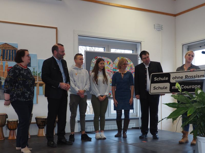 Die Herzog-Albrecht-Schule hat den Titel „Schule ohne Rassismus – Schule mit Courage“ im Rahmen eines Festaktes mit schönen künstlerischen Einlagen verliehen bekommen. Projektpate Manfred Weber, Mitglied des Europaparlaments (MdEP), zeigte sich begeistert vom vielfältigen Engagement seiner ehemaligen Schule. Mit dem afrikanischen Willkommenslied „Funga alafia ashe ashe“ begrüßte am Freitag, den 17.01.2020 die Klasse 1b mit ihrer Klassenlehrerin Alexandra Barwanietz die zahlreichen Gäste, ihre Mitschüler und Lehrer zum Festakt der Verleihung der Anerkennung „Schule ohne Rassismus – Schule mit Courage“. Schulleiter Franz Hottner nahm die Botschaft des Liedes in seine Begrüßung auf. „All meine Gedanken sind bei Dir“, so will ich Sie alle willkommen heißen“. Neben dem Projektpaten Herrn Manfred Weber waren zahlreiche Ehrengäste sowie viele Mitglieder der Schulfamilie erschienen. Die Schule stehe dafür ein, gegen jede Art von Diskriminierung, Rassismus und Benachteiligung anzugehen, betonte Rektor Franz Hottner. Man wolle innerhalb des Unterrichts und auch außerhalb couragiert für ein friedliches und tolerantes Miteinander kämpfen. Unter dem diesjährigen Jahresmotto „Fremde werden Freunde“ habe man in den letzten zwölf Monaten viele Projekte wie z.B. die Kunstprojekte „Das vereinigte Europa“ und „Die Mauer des Schweigens“, die Teilnahme am Projekt Ehrenamt macht Schule, die Hilfsaktionen „Afrika braucht Wasserspender“ und „Weihnachtstrucker“ oder die Kuchenspendenaktion für das Hilfswerk „Friedensdorf International“ organisiert und damit ein kostbares Zeichen der Hoffnung – ja der Nächstenliebe gegeben. Manfred Weber hob in seinem Grußwort hervor, wie wichtig es auch für die Geschichte Europas sei, dass die Menschen sich nicht gegeneinander abgrenzen, sondern aufeinander zugehen. „Das Miteinander anstelle des Gegeneinanders und die Freiheit sind die Grundidee, die uns Europäer zusammengeführt und Frieden geschaffen haben“, so Weber. Das sei keine Selbstverständlichkeit, sondern müsse immer wieder neu errungen und auch an die nächsten Generationen weitergegeben werden. Zudem betonte er, wie wertvoll es sei, Vielfalt als Vorteil und Bereicherung zu sehen. „Schule ohne Rassismus“ sei ein wertvoller Beitrag für die Zukunft der Gesellschaft. Es erfülle ihn mit Stolz, als Projektpate mit dafür einstehen zu können. Anja Wessely als Vertreterin der Landeskoordination Bayern hob in ihrer Ansprache hervor, welche Chance die Schule habe, als Keimzelle für eine tolerante, achtsame und bessere Welt zu dienen. Wessely überreichte stellvertretend für die gesamte Schulfamilie im Anschluss die Auszeichnung „Schule ohne Rassismus“ an die Schulleitung, Projektleiterin Carolin Moro, den Paten Manfred Weber sowie die Schülersprecher Genita Nrecaj und Kilian Frühmorgen. „Integration ist bei uns nicht nur eine Worthülse“, sagte Hottner abschließend. Integration finde jeden Tag in den Klassen statt, in denen Schüler unterschiedlicher Herkunft, Kultur und Religion in vielen schul-, klassen- oder jahrgangstufenübergreifenden Aktionen und Projekten zusammen lernen.