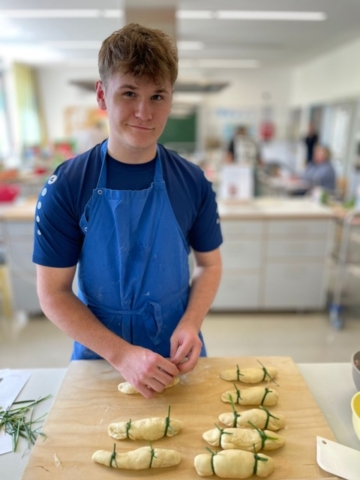 Im Fach Ernährung und Soziales (ES) planten die Schüler anlässlich der fiktiven Einweihungsfeier Fingerfoodgerichte, die sie aufwendig zubereiteten und liebevoll garnierten. Ihre Speisen präsentierten sie in Form eines Büfetts.