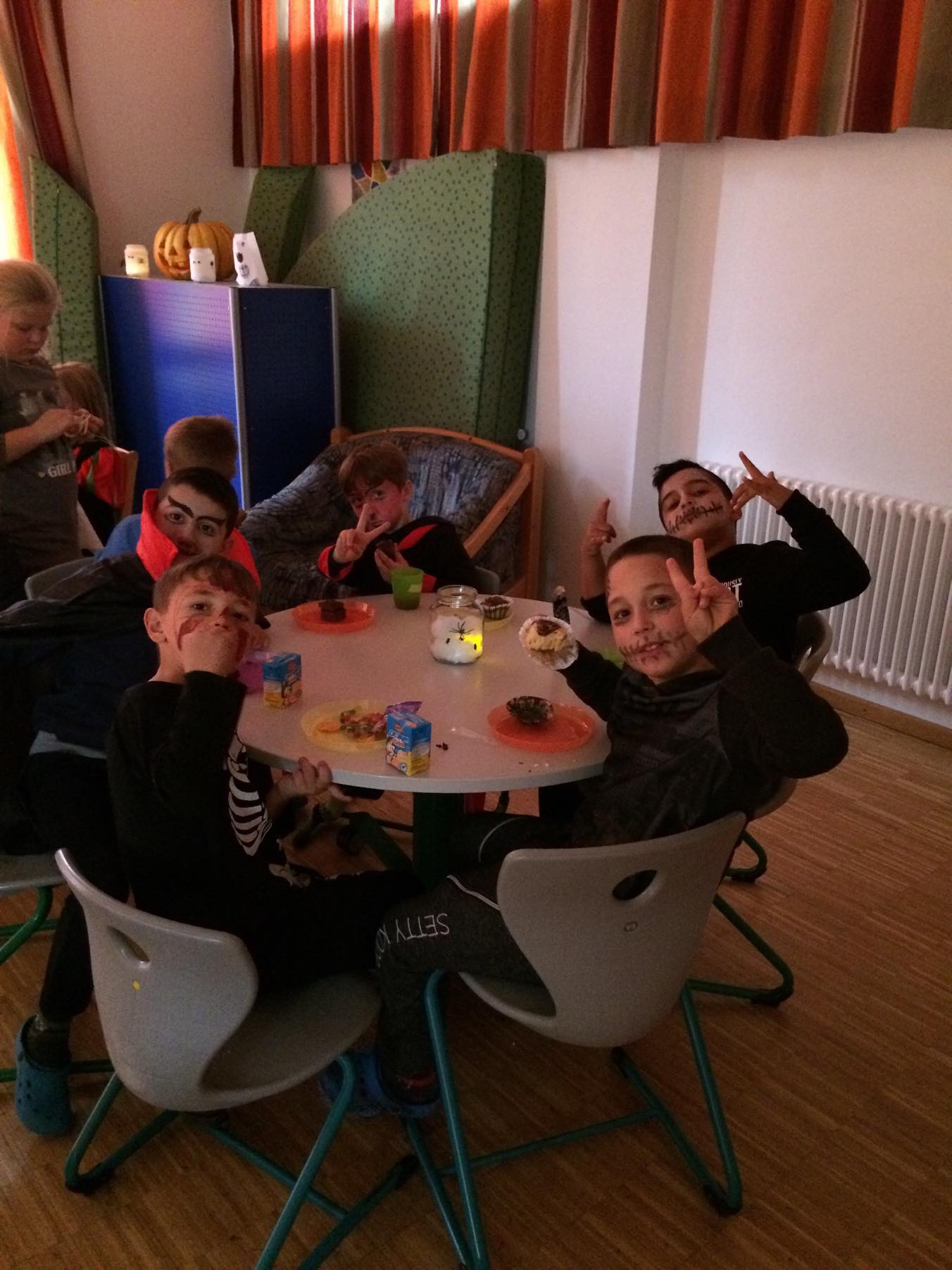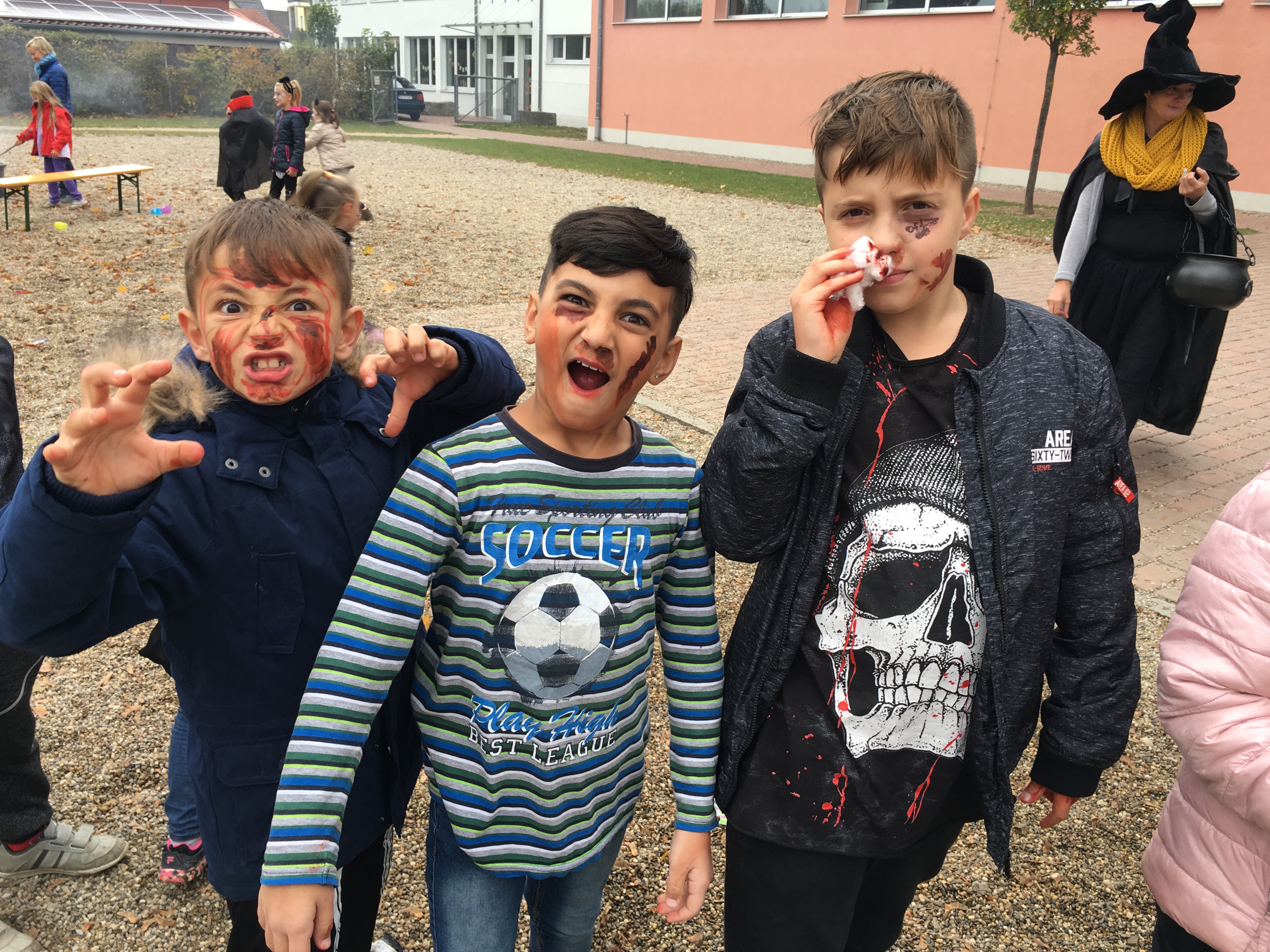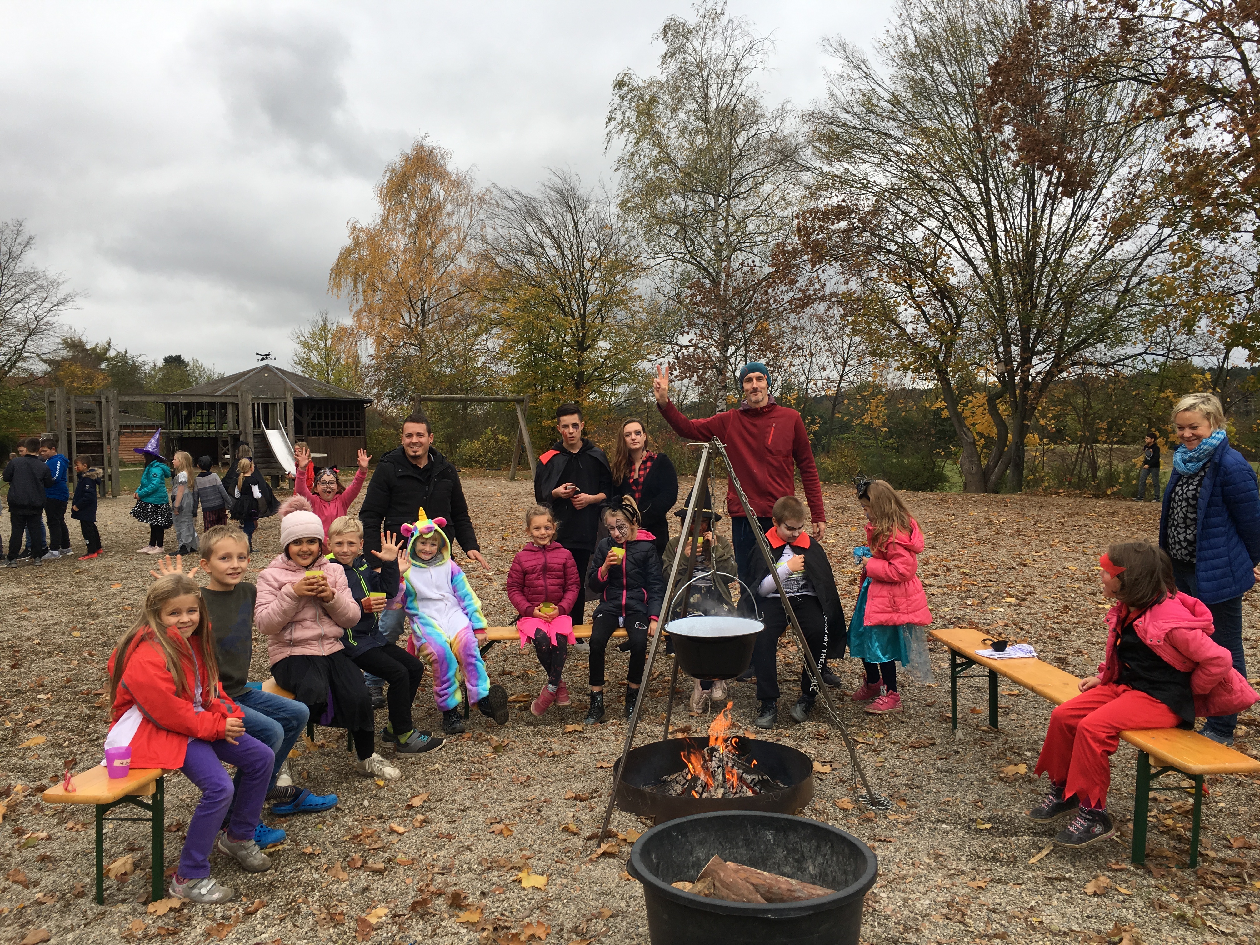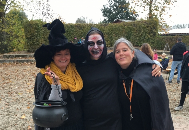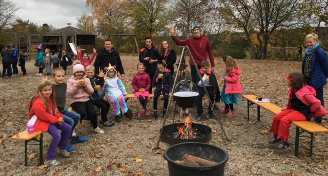 Zur Party mit den mit rund 100 Kai-Kindern der gab es dann ein reich gedecktes Buffet und jede Menge Süßigkeiten. An der Schminkstation konnte man sich ein gruseliges Make-Up machen lassen. Den Abschluss bildete ein Lagerfeuer mit einem Hexenkessel voller Kinderpunsch. Ganz nebenbei konnten dort auch Marshmallows mit den selbst geschnitzten Stöcken gegrillt werden.